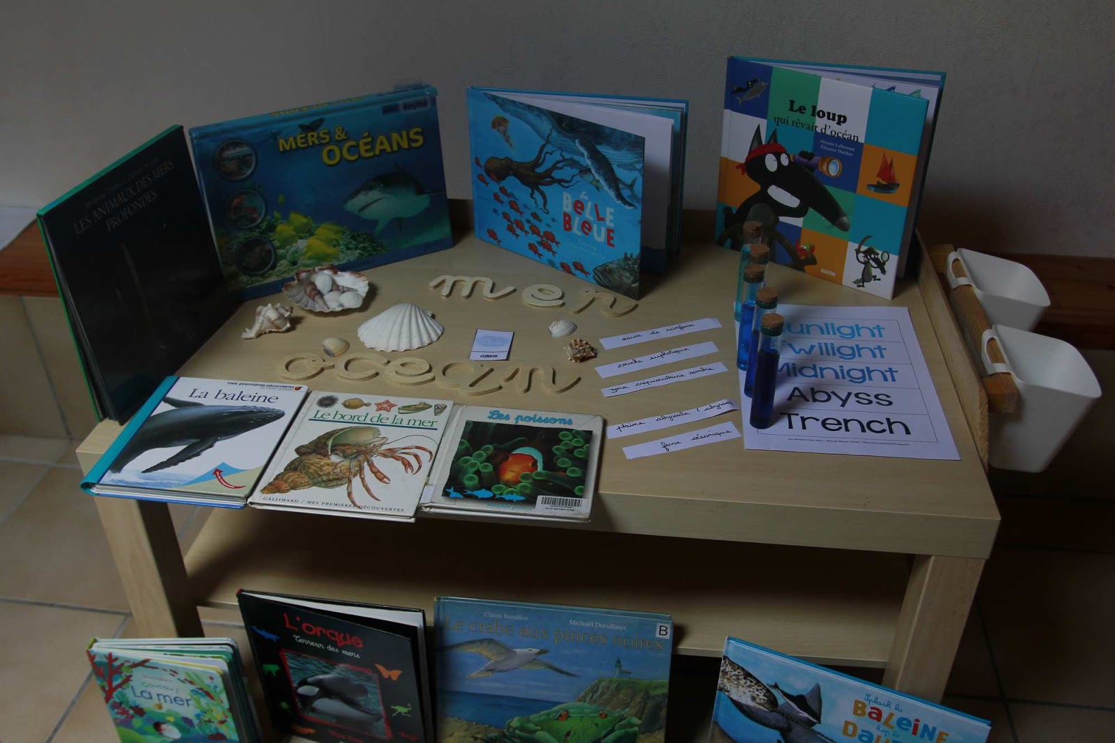 Comme pour d’autres thèmes je leur avais préparé une table dédiée avec différents objets et livres…