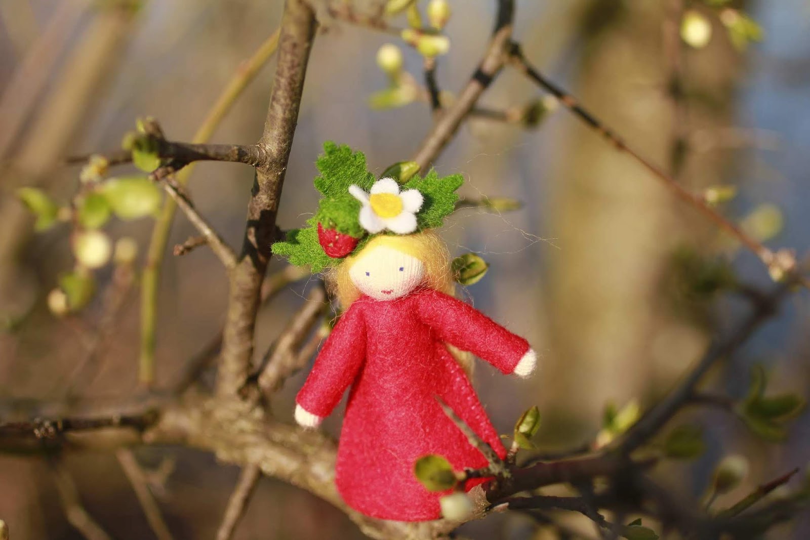 Elle leur a ainsi donné plusieurs indices pour leur permettre de retrouver de petites fées qui leur donneraient chacune un indice pour retrouver les enfants graines. De petits personnages rappelant le printemps : la fée fraise et le bébé fraise, l’enfant abeille, la fée narcisse, la fée perce neige, … J’avais commandée ces poupées de la marque Ambrosius Dolls sur le site https://tangrammontessori.com/146-ambrosius-dolls