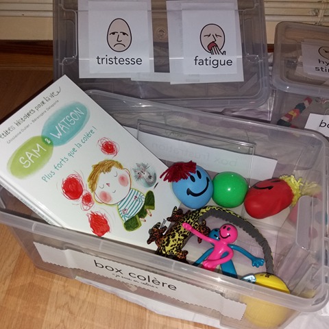 Nous avons donc 3 boîtes : Colère/frustration, Tristesse/fatigue, Angoisse/hyper-stimulation.