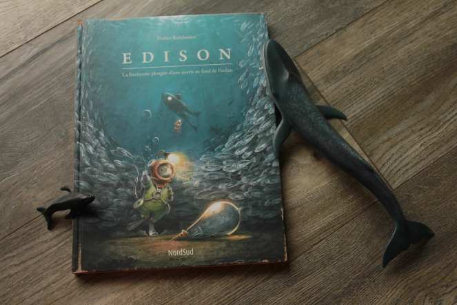 Un livre qui correspond parfaitement à ma vision du « living book ». Un album écrit avec une belle plume, riche tant dans le texte que dans les domaines d’apprentissages qu’il aborde. On y découvre les fonds marins et les créatures qui le peuplent, les lois de la physique (comment descendre dans l’océan en conservant une réserve d’air, l’air comprimé, la nécessité d’utiliser un poids pour aider à descendre sous l’eau… l’observation des espèces marines pour créer un sous-marin en copiant leur anatomie,… la question des profondeurs et de la pression de l’eau…). Mais surtout, l’invention de l’ampoule électrique et Thomas Edison. Une grande richesse dans le vocabulaire utilisé mais aussi une histoire qui permet d’aborder tout un domaine scientifique sous couvert d’une histoire touchante et mignonne. Un moyen vraiment original pour aborder des thèmes qui ne sont pas toujours faciles à comprendre pour les enfants. Un album captivant sur l’invention de l’ampoule électrique et sur Thomas Edison. L’auteur y mélange d’une manière vraiment très agréable la fiction avec une histoire mignonne et la réalité. Un ouvrage parfait pour ouvrir le dialogue avec l’enfant et approfondir ensuite le sujets abordés dans l’histoire.