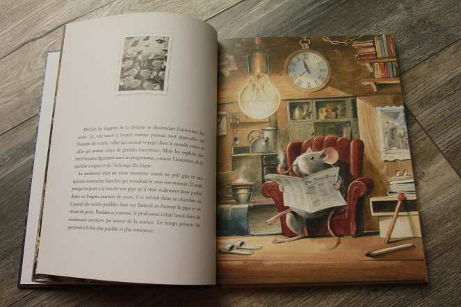 Tout commence par l’université des souris (et oui parce que les souris font même de grandes écoles). Cachée derrière les murs d’une librairie où les souris peuvent faire de grandes études sur des sujets plus passionnants les uns que les autres. Lorsque Peter, un petit nouveau, va rencontrer le professeur pour lui demander son aide pour partir à la recherche du trésor laissé par son arrière, arrière, arrière…. lointain ancêtre qui avait pris un bateau pour traverser l’Atlantique et se rendre en Amérique. Après un premier refus d’aider son jeune élève, le vieux professeur décide finalement de poursuivre l’aventure avec Peter et de l’aider. Une super aventure qui démarre pour ces petites souris. Retrouver le trajet pris par le bateau où se trouvait l’ancêtre de Peter, déterminer par quels moyens descendre au fond de l’océan, rencontrer les monstres marins, fabriquer leur sous marin puis trouver enfin un trésor tout à fait inattendu….