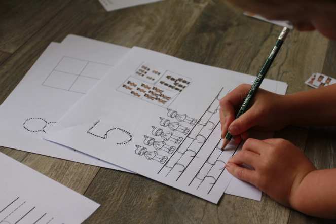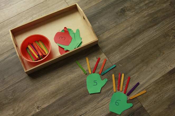 J’avais trouvé des modèles pour réaliser des personnages dans le thème de Thanksgiving alors on a sorti nos blocs géométriques.
