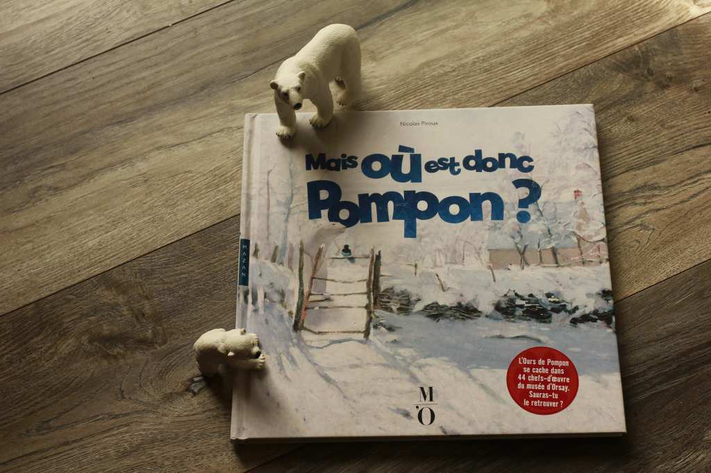L’ours Pompom pour parler de François Pompom, sculpteur et artiste français. Un moyen d’aborder l’art de manière ludique. Mais où est donc Pompom? a eu beaucoup de succès chez nous. Il est magnifique et le côté « cherche et trouve » plait beaucoup aux enfants. Une manière sympa d’observer des oeuvres d’art pendant qu’on cherche où l’ours Pompon s’est caché.
