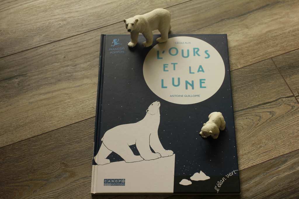 L’ours et la Lune qui met en scène l’ours Pompom avec de magnifiques illustrations et une histoire poétique. (Billet ici https://planeteparentage.com/2019/10/22/lours-et-la-lune/)
