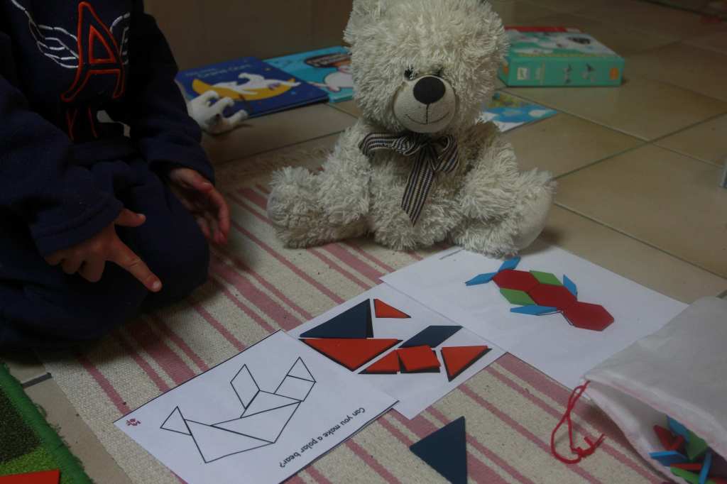 J’avais trouvé sur le net des modèles pour réaliser des ours polaires, des manchots ou pingouins avec nos blocs géométriques.