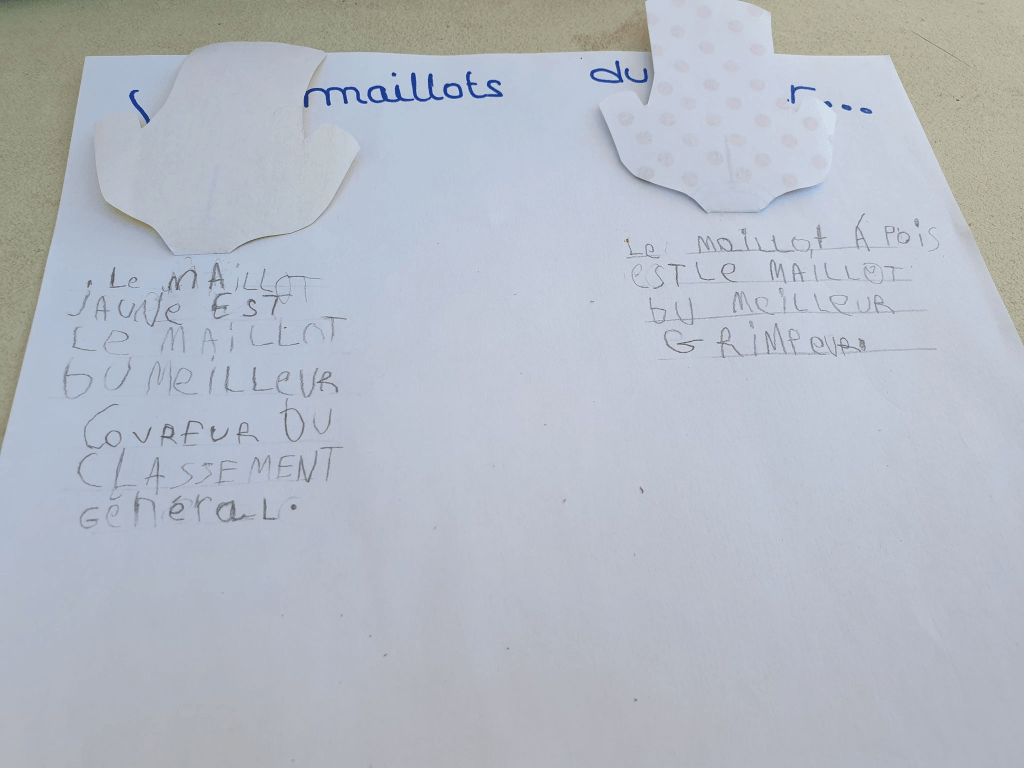 Pour Antonin (7 ans), on va plutôt réaliser un petit carnet avec une carte un peu plus simple des différentes étapes, (moins détaillées), les différents maillots, les équipes, les pays des coureurs à situer sur une carte, les drapeaux… des calculs et problèmes mathématiques que je vais tirer des résultats…