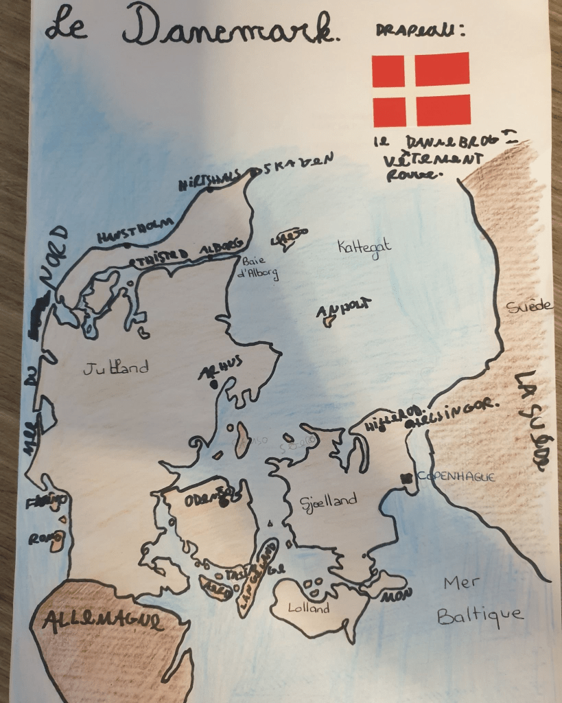 - géographie (situer le Danemark, Copenhague étant la ville de départ du Tour, son drapeau, cartographie du Danemark; drapeaux des pays des coureurs, régions de France, monuments de France, cartographie des régions de France,…)