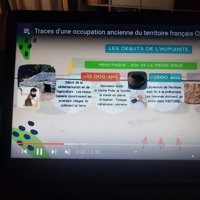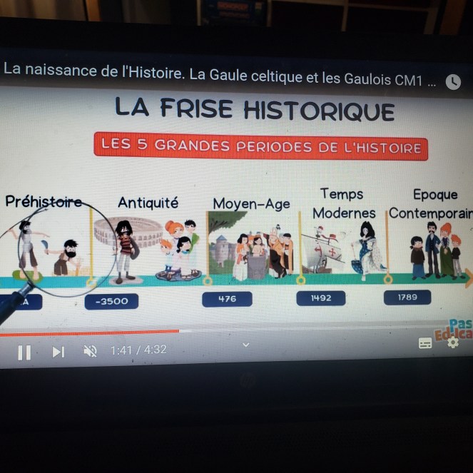 On a suivi plusieurs vidéos sur la matinée. Notamment pour pouvoir se faire un avis et voir comment elles sont organisées, et comment chaque séquence est construite. C’est un succès auprès des deux enfants (8 et 11 ans) ; ils n’ont ni le même niveau en Histoire, ni les mêmes connaissances ou encore le même intérêt, (Mathéa étant très avancée dans ce domaine parce qu’elle est passionnée par différentes périodes de l’Histoire), mais tous les deux ont apprécié le format, les sujets disponibles (Mathéa demande les mêmes sur le programme de fin de collège pour préparer son brevet !).