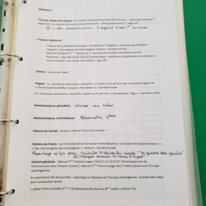 En soit, elle a terminé une partie du programme 6/5ème sur différentes matières les deux dernières années (notamment Littérature/Histoire-Géo), j’ai donc fait le point sur chaque matière/les attendus et notre manière de travailler pour que tout ça puisse fonctionner.