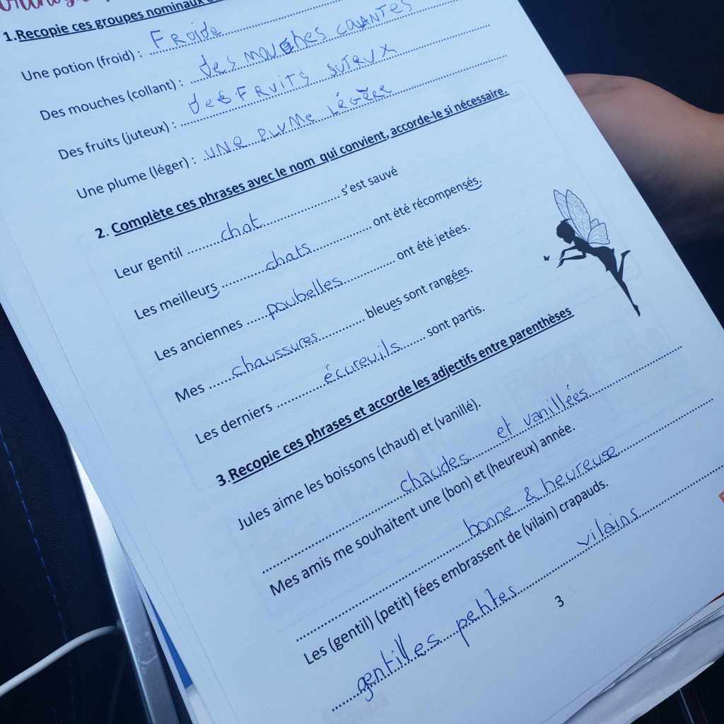Pratique à emmener pour en faire quelques pages pendant qu’on attend (le frère ou la sœur qui est à son sport ou en rdv). On peut prendre 10 minutes pour regarder et faire un peu ; C’est aussi (pour Antonin puisque le niveau est différent et qu’il n’y a pas les mêmes objectifs que sa sœur qui prépare le brevet) un moyen de réviser/travailler un peu s’il a moins envie de faire le reste ; un bon compromis les jours de fatigue (pour ça que l’on continue d’utiliser les cahiers de vacances de cet été… travailler sans en avoir l’air)!