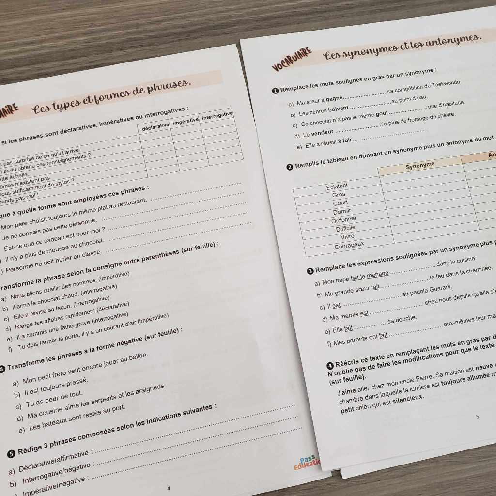 Je le disais au début de cet article, l’avantage de ces cahiers à imprimer : s’adapter à l’enfant, ses besoins ! On peut choisir ce dont on a besoin si l’enfant oscille entre plusieurs niveaux selon les matières ; Le format permet aussi de s’adapter aux capacités attentionnelles de chaque enfant : les fichiers comprennent (selon les niveaux) entre 13 et 17 pages; Libre à chacun de choisir la manière de faire : certains préféreront faire une matière chaque jour, d’autres plutôt un peu de chaque tous les jours en faisant un exercice de chaque matière ;