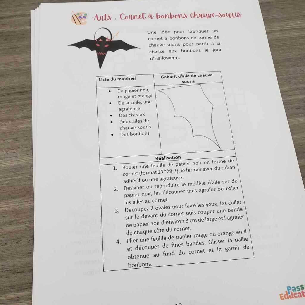 Des exercices qui restent ludiques tout en permettant de réviser les des notions importantes pour les collégiens. Pour chaque niveau, on y retrouve les notions clés, celles qui méritent d’être révisées pendant les vacances pour s’assurer d’une bonne compréhension/bonne acquisition, pour s’entraîner tout simplement ; Comme je le disais déjà cet été, je reste convaincue que si une coupure, une pause régulière est importante pour permettre aux enfants de se reposer, de récupérer (j’entends déjà les « les pauvres petits, on ne leur demande pas tant/rien en comparaison d’il y a 50 ans en arrière », mais notre rythme de vie actuel à lui seul est épuisant pour des enfants), il est tout aussi essentiel de garder un minimum de temps « d’apprentissages » (je parle là de révisions et non pas de nouveaux apprentissages). Mais de continuer à appliquer les notions vues pour garder l’habitude et la fluidité dans la réflexion et l’application. Pas besoin d’y passer trois heures tous les jours, quelques minutes suffisent amplement (un temps de lecture, quelques opérations en mathématiques ou la résolution d’un ou deux problèmes, quelques jeux autour des matières telles que l’Histoire, la géographie, les sciences… ); C’est ce que propose Pass’Éducation via leurs cahiers de vacances : des exercices ludiques, courts qui permettent de réviser sans que ça ne soit trop répétitif ou rébarbatif ; Des activités qui prennent des formes vraiment variées ; L’accent reste mis sur la lecture et la compréhension de textes (les textes sont adaptés à chaque niveau, mais toujours en lien avec ce qui se passe en automne ou autour d’Halloween pour les plus grands) ainsi que le français d’une part : Des phrases à réécrire, des mots à analyser, des mots à accorder,… les mathématiques de l’autre; et on retrouve ensuite des activités qui permettent de s’amuser autour d’autres matières : Histoire-géo, art, bricolage, recette de cuisine (un excellent moyen de travailler de nombreuses compétences (lecture, compréhension de texte, mathématiques, motricité,…)! On fait le tour de chaque matière en s’amusant. Le fait qu’il y ait peu à écrire est plutôt bien apprécié ici ; Pas de longues lignes à recopier/réécrire, pratique pour les enfants dys!