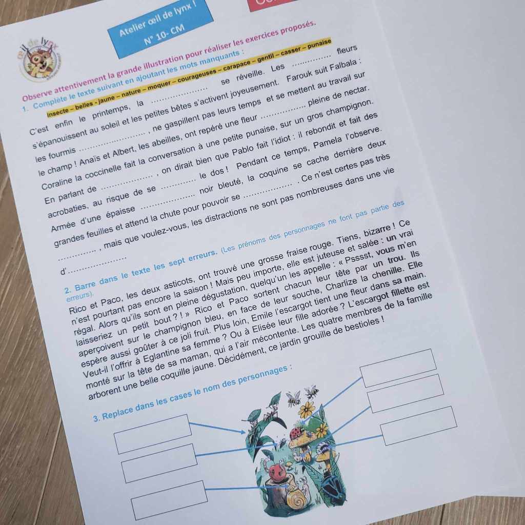 Pour pouvoir lire correctement, il faut aussi avoir acquis une bonne capacité à observer, à suivre la ligne, à prélever l’information dans un document. Tout un tas de choses qu’on travaille en amont par le biais de nombreuses autres activités. Des jeux que l’on retrouve souvent dans les activités de prélecture en maternelle, mais qui restent importante à l’âge où les enfants apprennent à lire. Elles vont leur permettre de continuer à focaliser leur regard, à travailler leur acuité visuelle. Des compétences essentielles pour gagner en fluidité de lecture. L’avantage des fichiers « Œil de lynx » se porte justement sur la mise en application de ces compétences : on travaille l’observation et l’attention, on apprend à focaliser son regard sur l’image et à lire cette image en détails.