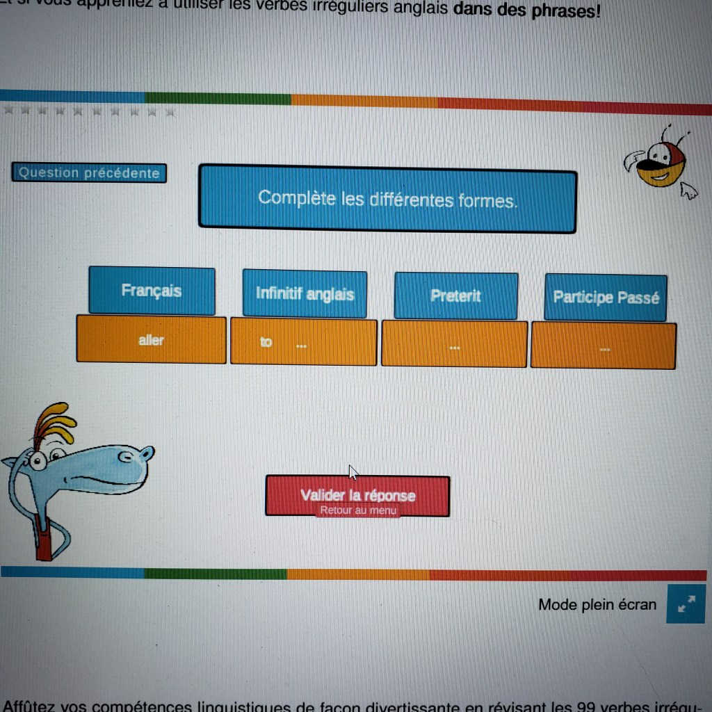 Prochaine étape les niveaux suivants qui vont lui permettre de travailler sur les différentes conjugaisons des verbes irréguliers.