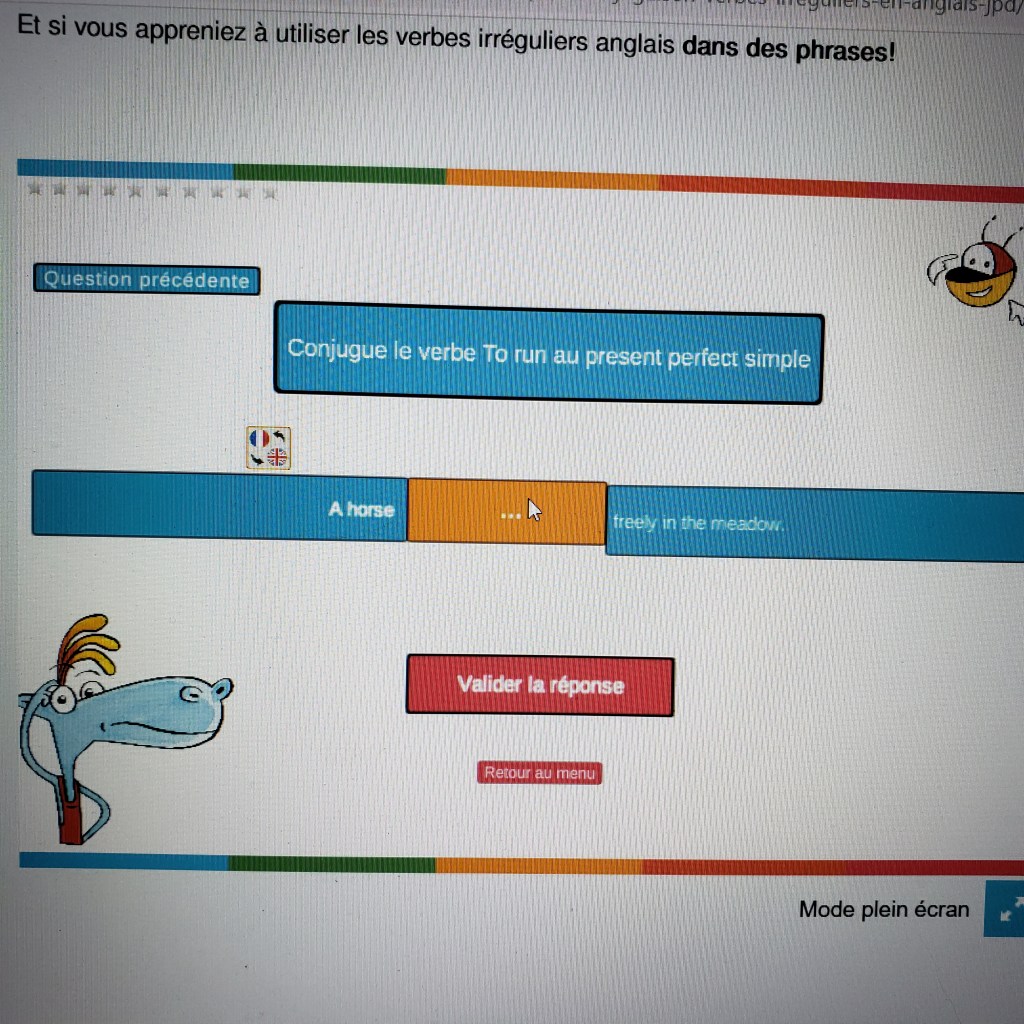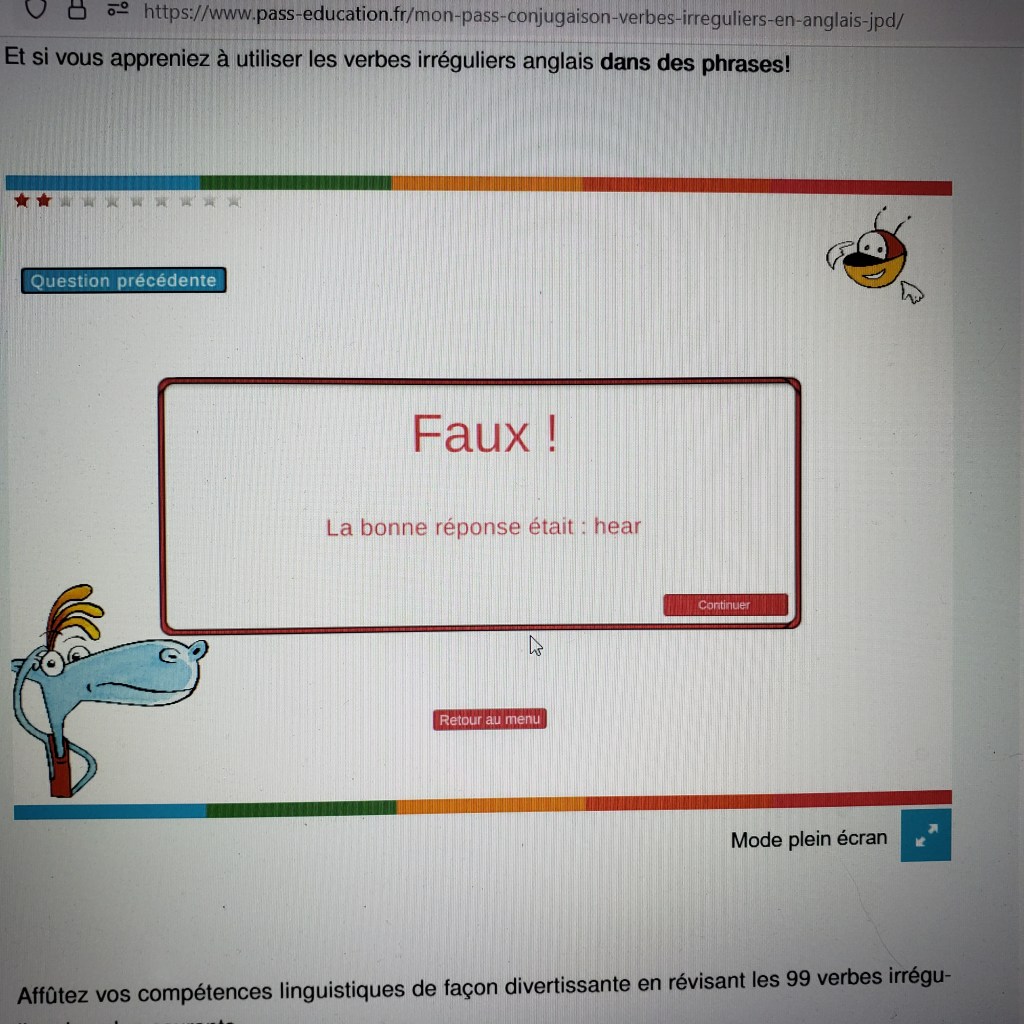 Chez nous on l’utilise plusieurs fois par semaine sur des temps de 10 à 20 minutes. Chaque série compte 10 exercices ce qui fait que ça reste court et suffisant pour s’entraîner/mémoriser/réviser sans que ça ne devienne trop long. C’est clairement un vrai plus sur les séances d’anglais. Je garde 1H30 où on travaille ensemble sur un sujet de brevet (lecture du texte/compréhension/traduction/questions ; (je garde pour le moment la partie écrite puisqu’on n’en n’est pas encore là)) et elle a plusieurs temps en autonomie sur le site de pass’éducation pour travailler la conjugaison.