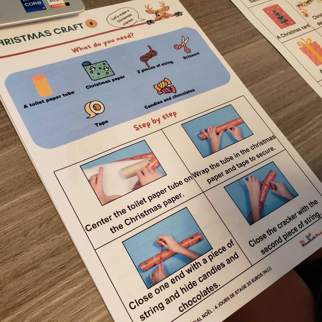 Les enfants ont déclaré cette semaine qu’il était l’heure des vacances. C’est vrai que cette année les congés d’hiver tombent deux jours avant Noël alors que c’est une période qui appelle à ralentir, se poser, faire d’autres activités. C’est quelque chose que l’on ressent vraiment beaucoup chez nous. On va donc faire un pause dans l’ief plus formelle mais en gardant quelques activités ludiques qui permettent de réviser, maintenir les acquisitions. Et ces cahiers d’anglais sont donc parfaits. (D’autant plus avec le contrôle dès la reprise… il y a quand même besoin de maintenir et réviser un minimum, mais on peut le faire en s’amusant).