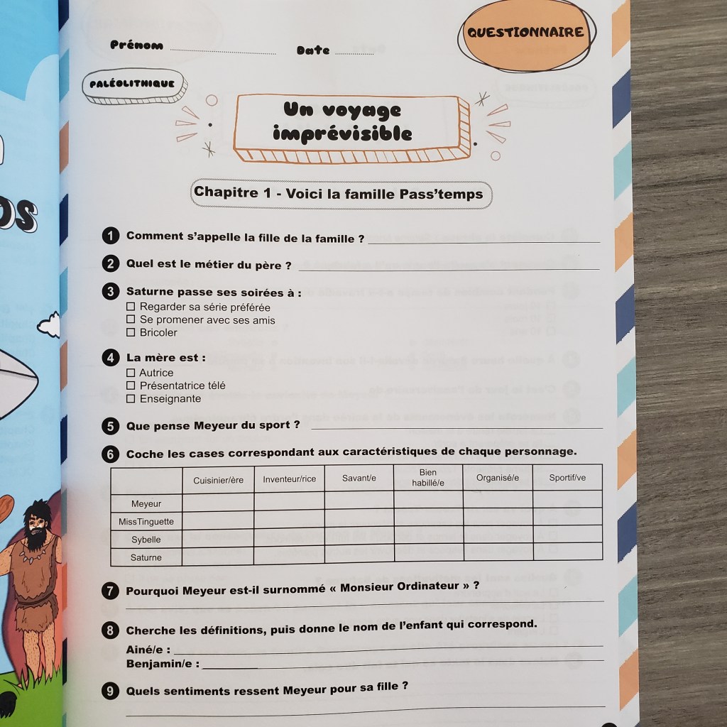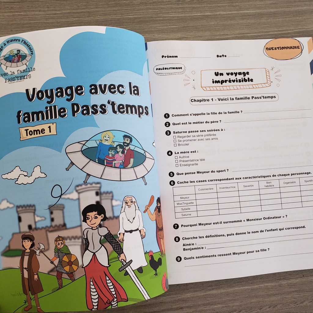 Un support ludique et intéressant, un format vidéo qui plaît souvent aux enfants parce que ça change de forme ou que ça permet de leur donner un temps d’activités pédagogiques en autonomie. Là encore, c’est la grande nouveauté de ce début d’année que je suis bien contente de pouvoir découvrir et utiliser avec les enfants. Ça restera un support que je vais utiliser surtout avec Antonin puisque ça correspond davantage à son niveau (il serait en CE2, mais on oscille du CE2 à la fin de CM2 sur tout ce qui touche aux domaines de découvertes du monde). Mathéa est quant à elle très loin devant (niveau lycée) sur ce qui touche à l’Histoire (voir au-delà, puisqu’elle prépare des MOOC en Histoire avec notamment l’université de Lièges). Il n’empêche qu’à peine ce colis ouvert, qu’elle est partie lire les aventures de la famille Pass’Temps. Elle aime bien tout lire, tester, regarder, même si le sujet est maîtrisé pour elle. Et malgré son niveau dans ce domaine, elle a adoré les lire ; Elle les a trouvés sympas et vraiment drôles. Et je suis du même avis !