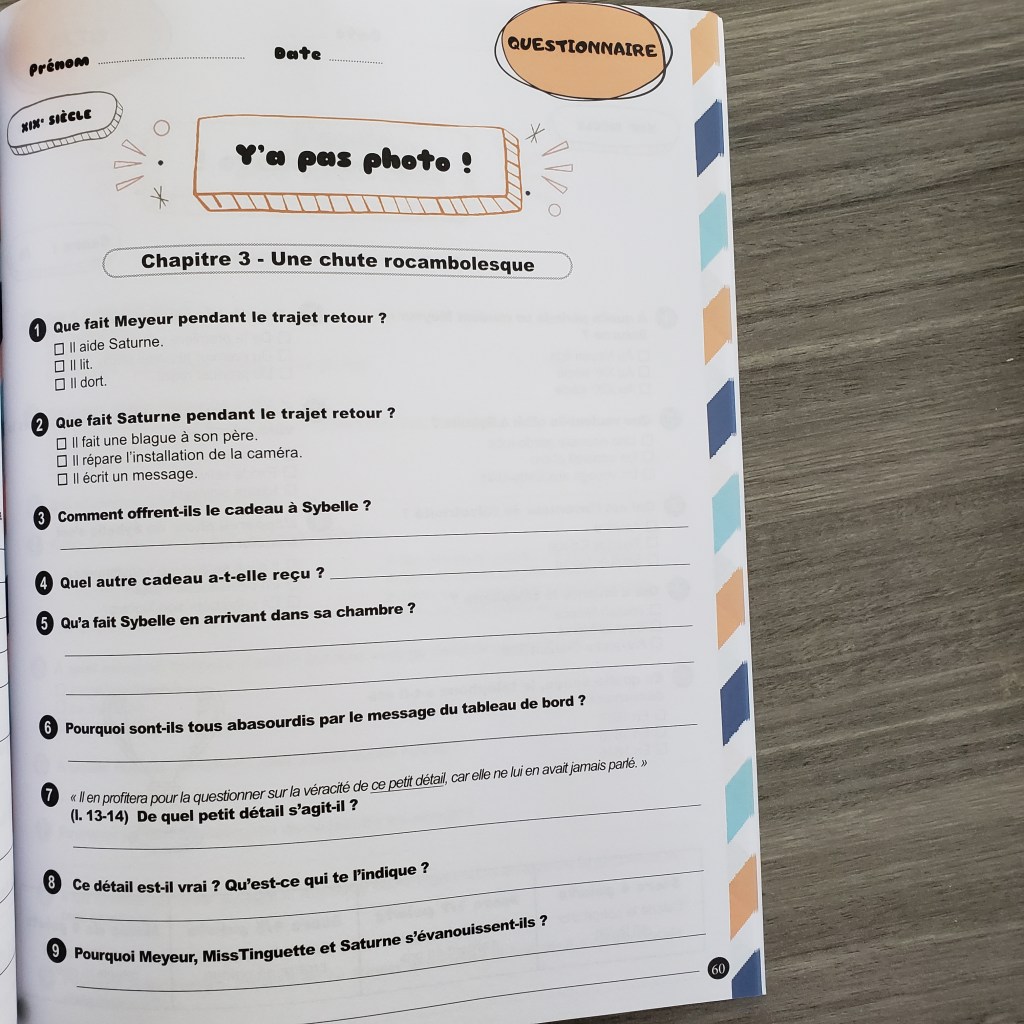 Le cahier d’activités regroupe de quoi réviser les deux tomes. On y retrouve des questions autour de chaque chapitre (QCM ou questions qui nécessitent une réponse écrite).