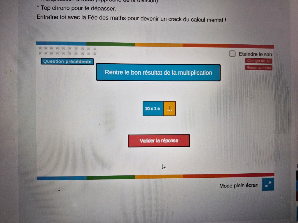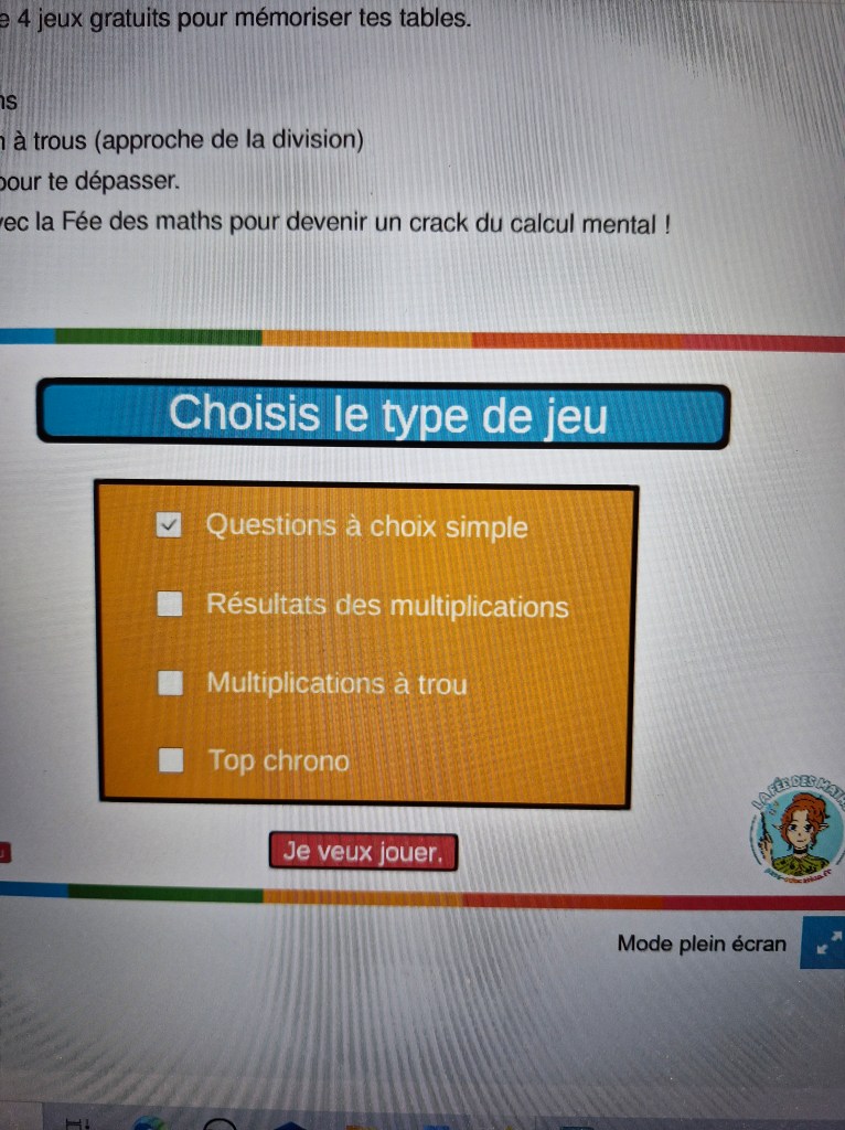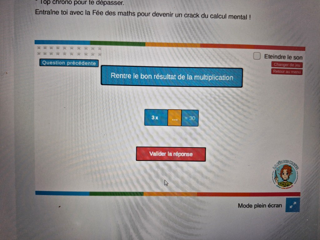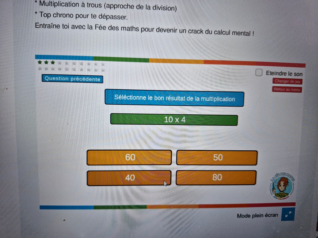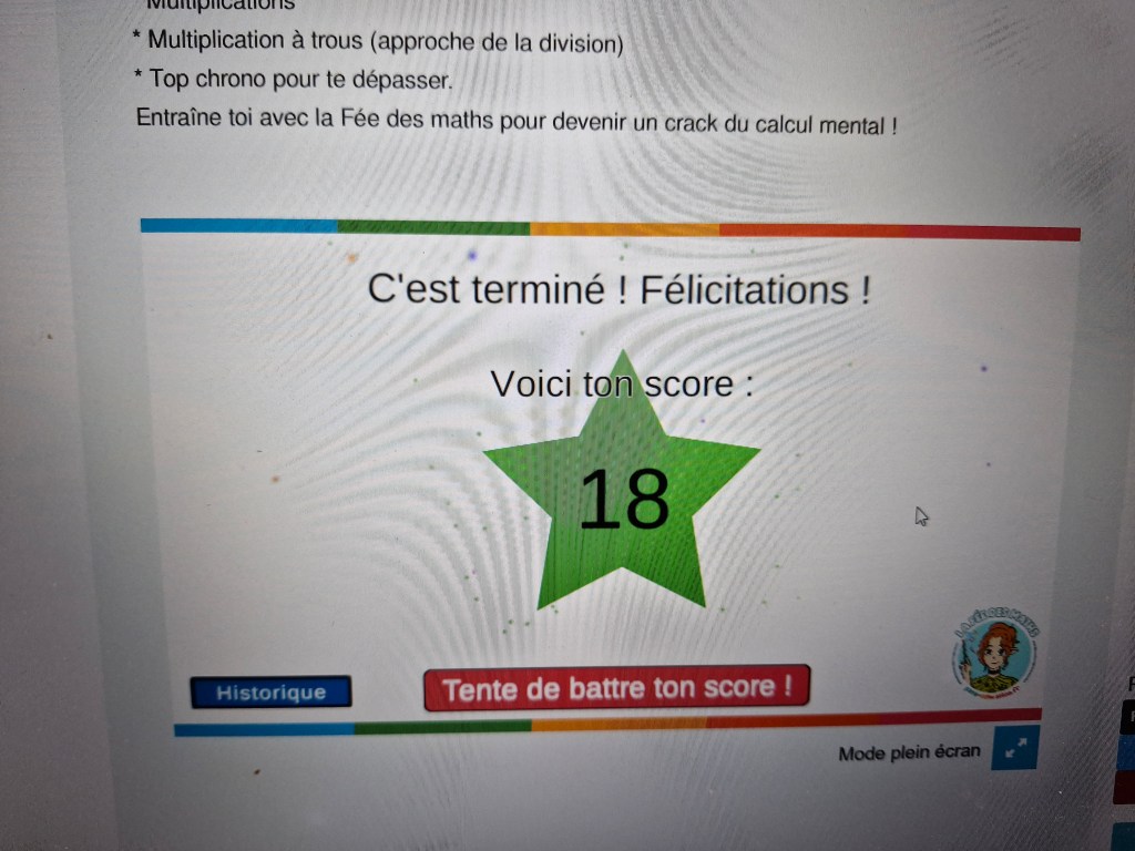 Pour les multiplications, on a découvert récemment la fée des maths sur le site Pass’Éducation. Certes elle n’a pas de baguette magique mais elle se base sur une formule que j’espère gagnante : le jeu !