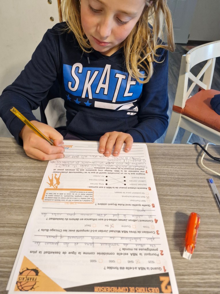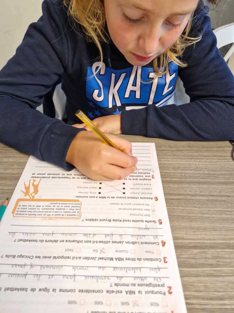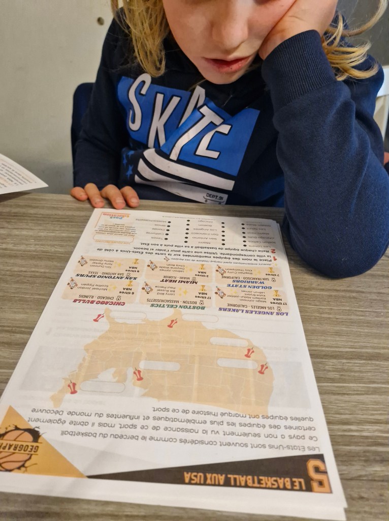 Gros point positif de ce dossier sur le basket : il sort juste après les Jeux Olympiques de Paris 2024, où Antonin s’est fait plaisir à regarder plusieurs matchs. Il connaissait donc certains noms, il avait déjà entendu parler d’autres sportifs et légendes de la NBA ; Forcément les infos données dans ce dossier et les activités allaient davantage lui parler. Je savais que ça lui plairait et qu’il serait davantage motivé à réaliser les différentes activités du dossier.