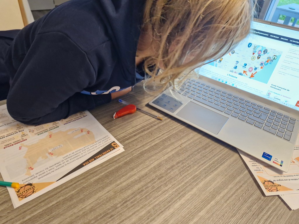 La partie qu’Antonin a beaucoup aimé : L’histoire et la géographie. Parler de sport, et dans ce support plus précisément de la NBA, est une excellente occasion pour parler géographie (il a adoré situer différentes équipes sur la carte des États-Unis. Chercher sur internet les villes et les États correspondants, puis les emblèmes de chaque équipe pour pouvoir les associer. Bon, sans surprise, son équipe préférée reste les Lakers de Los Angeles !
